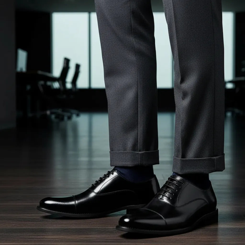 Com design clássico, costuras sutis e bico levemente alongado, o Couro Italiano Rubber combina perfeitamente com ternos, calças de alfaiataria e looks executivos.