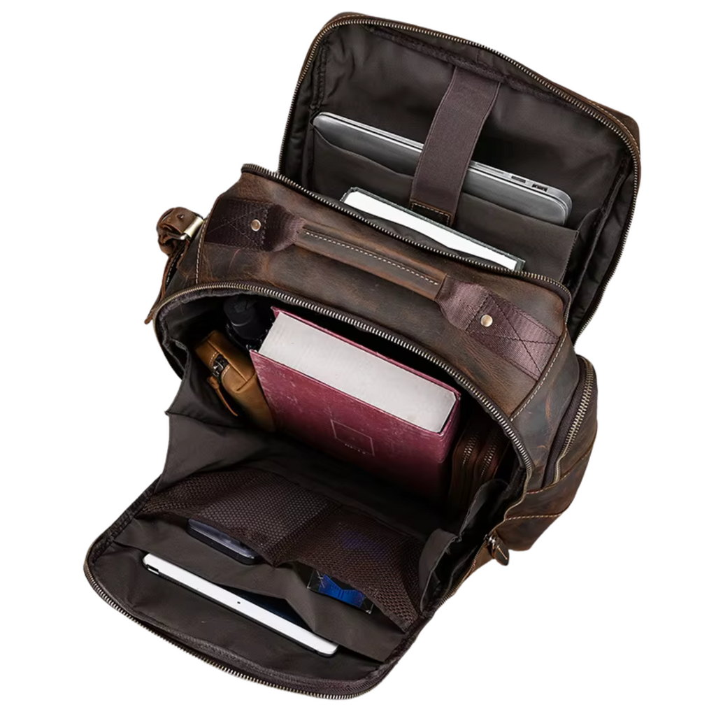 Mochila Masculina em Couro Genuíno Impermeável Americana – Estilo, Proteção e Versatilidade