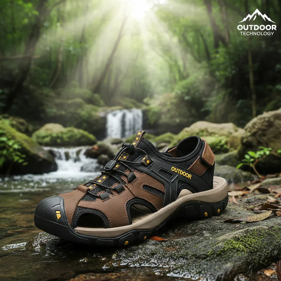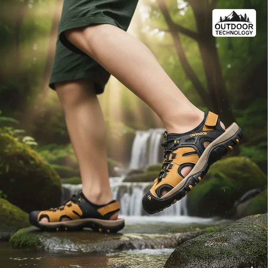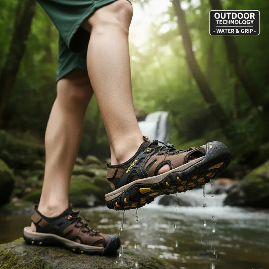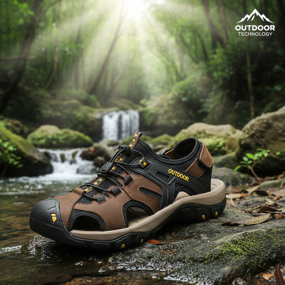 Sandália Masculina Esportiva em Couro com Solado Antiderrapante e Fecho Ajustável – Conforto e Estilo para Aventuras
