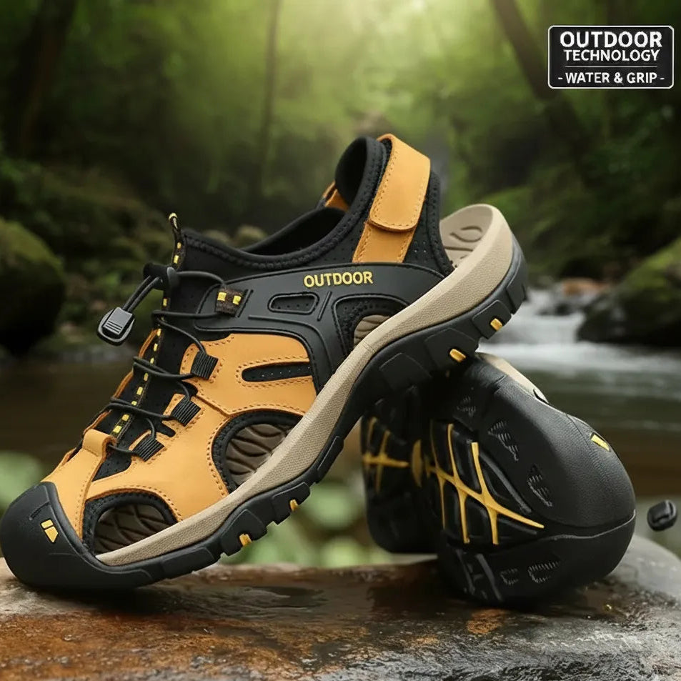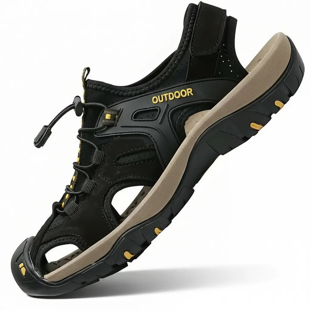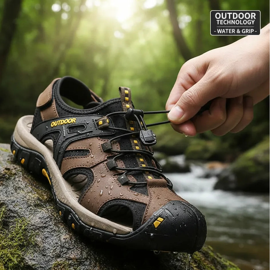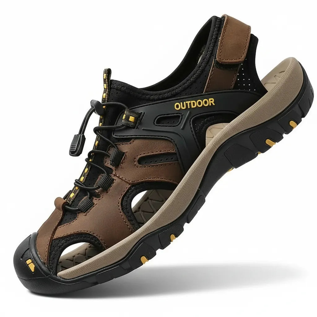 Sandália Masculina Esportiva em Couro com Solado Antiderrapante e Fecho Ajustável – Conforto e Estilo para Aventuras