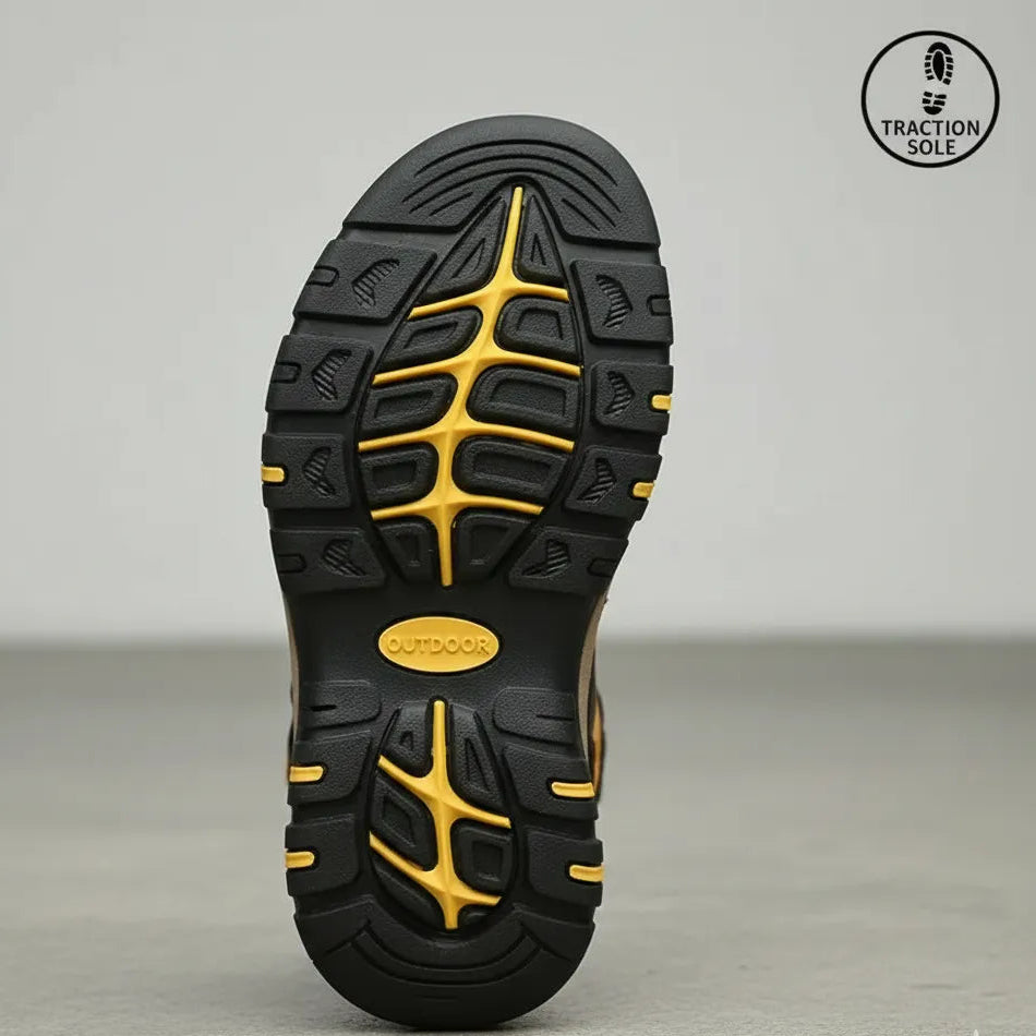 Fabricado em borracha de alta resistência, o solado oferece excelente aderência em diferentes tipos de terreno, prevenindo escorregões e aumentando a segurança durante a caminhada. -